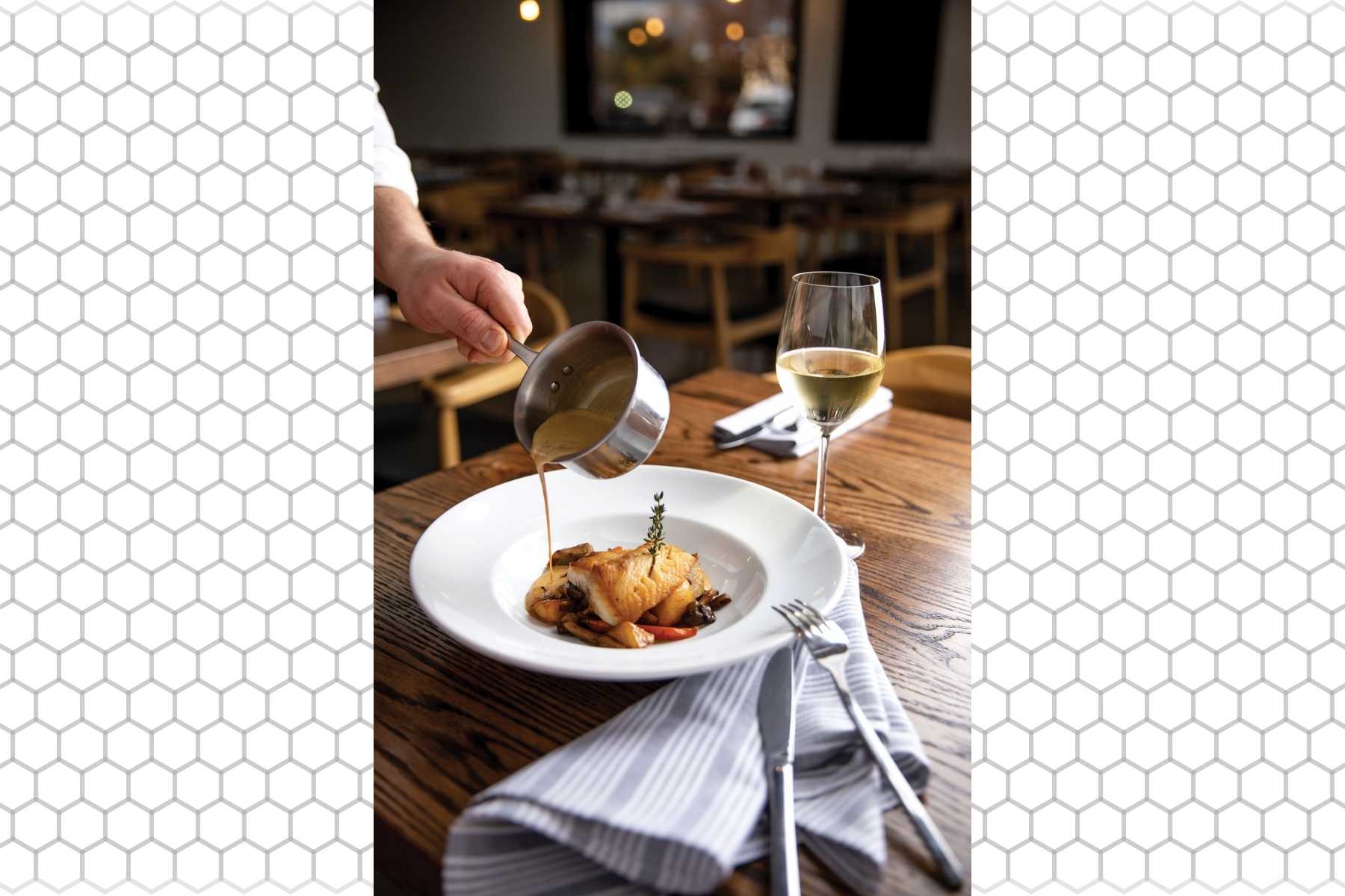 “I think our guests don’t always realize what goes into operating a restaurant,” says Julien, whose other hat is a toque blanche. “And so, I hope they can appreciate the fact that we try our best to be fair and not price anything more than we need to cover our cost of operation and keep the business afloat.”